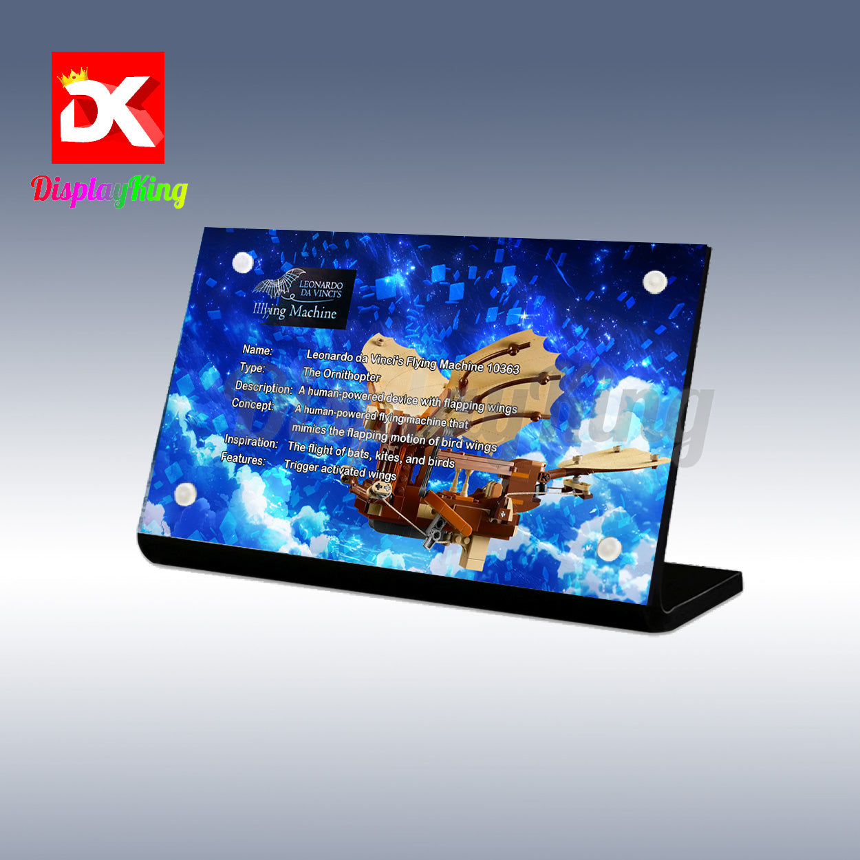 Display King - Acrylic display plaque for Lego Leonardo da Vinci's Flying Machine 10363