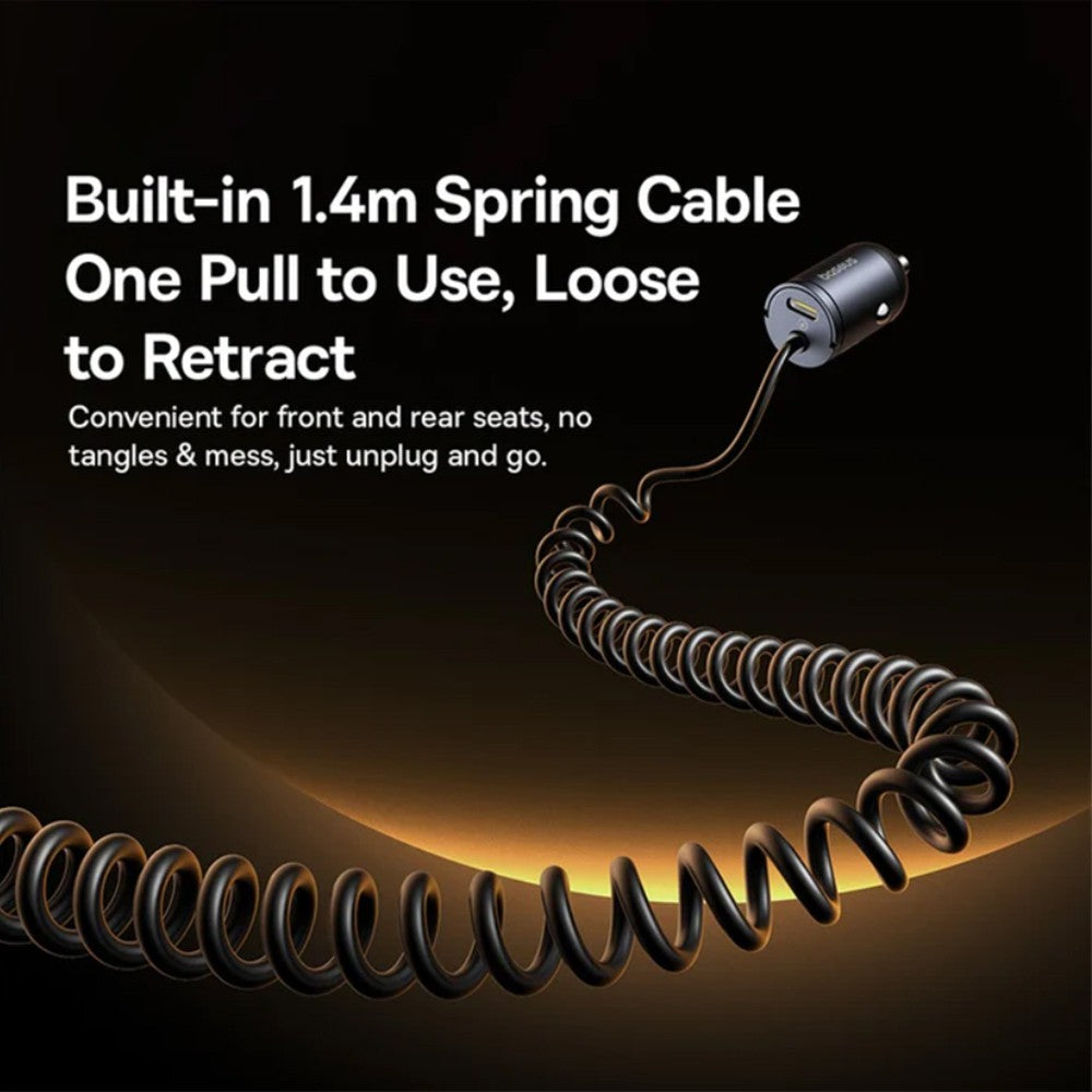 Features: Retractable spring cable, dual device fast charging