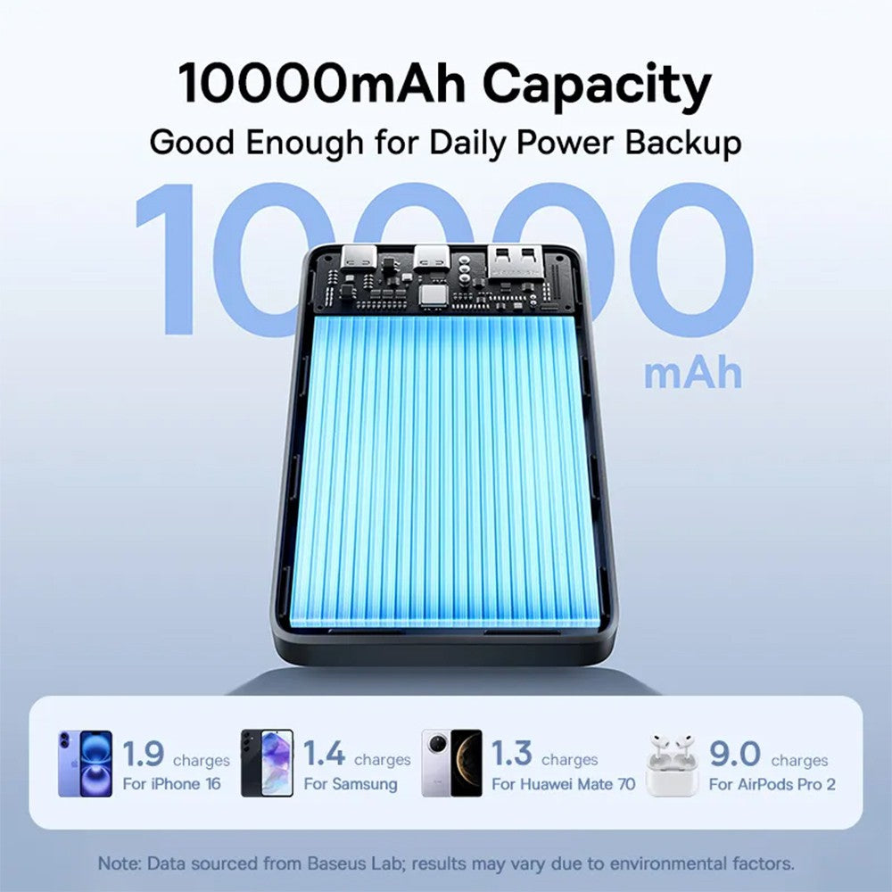 Power up your day with the Baseus EnerFill FP21 Power Bank—a slim, travel-ready 10,000mAh backup charger with ultra-fast 22.5W USB-C PD output. Charge