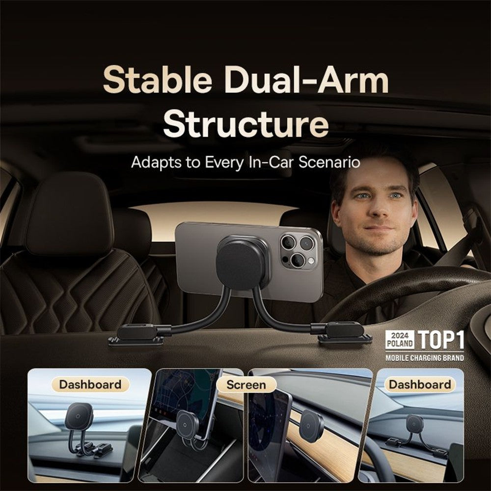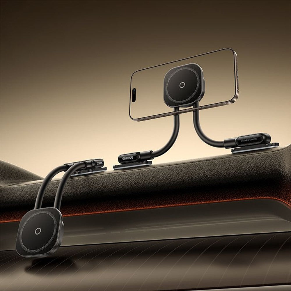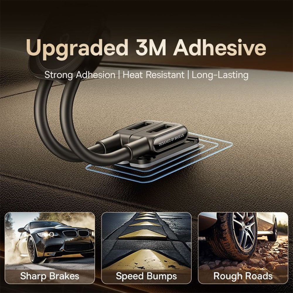 Baseus PrimeTrip C03s Magnetic Car Mount offers adjustable dual-arm angles, 20N magnetic hold (up to 25N), and heat-resistant 3M adhesive.